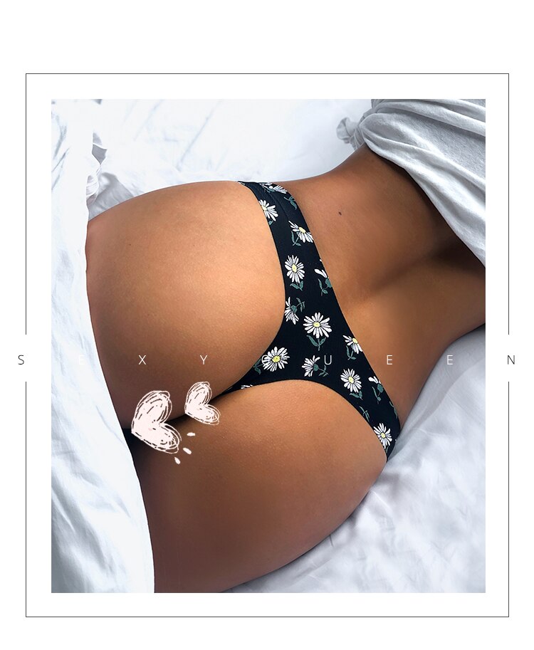 Ladies sexy printed floral underwear temptation low waist seamless thong panties breathable underwear female G string lingerie