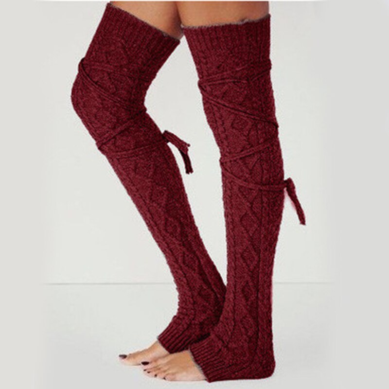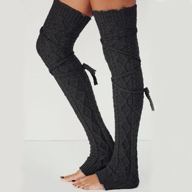Leg Warmers Women Solid Thigh-high Over Knee Long Drawstring Breathable Lacing Womens Legs Warmer All-match Trendy Chic Warm New