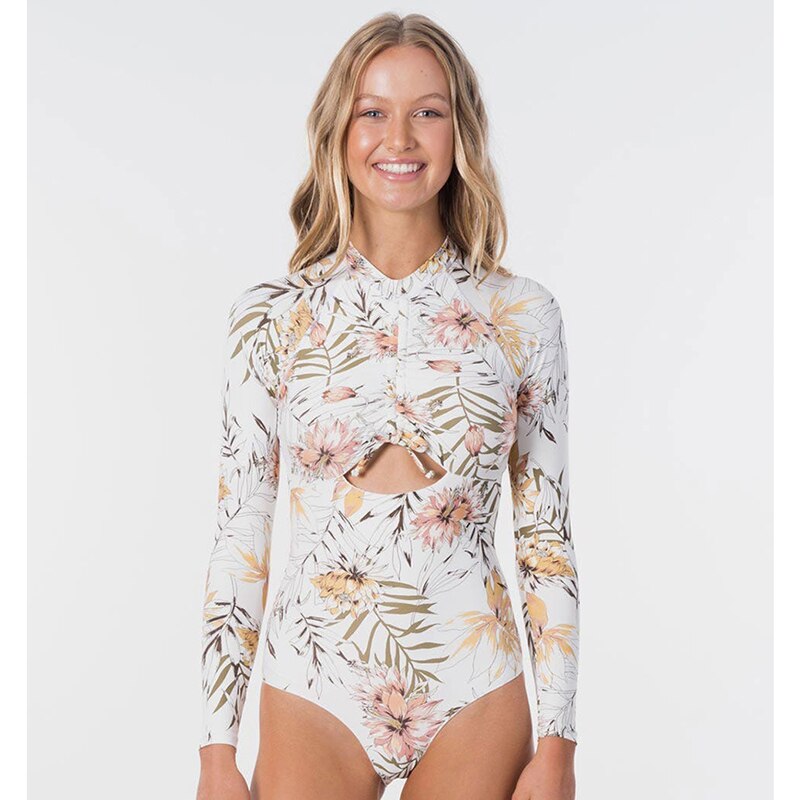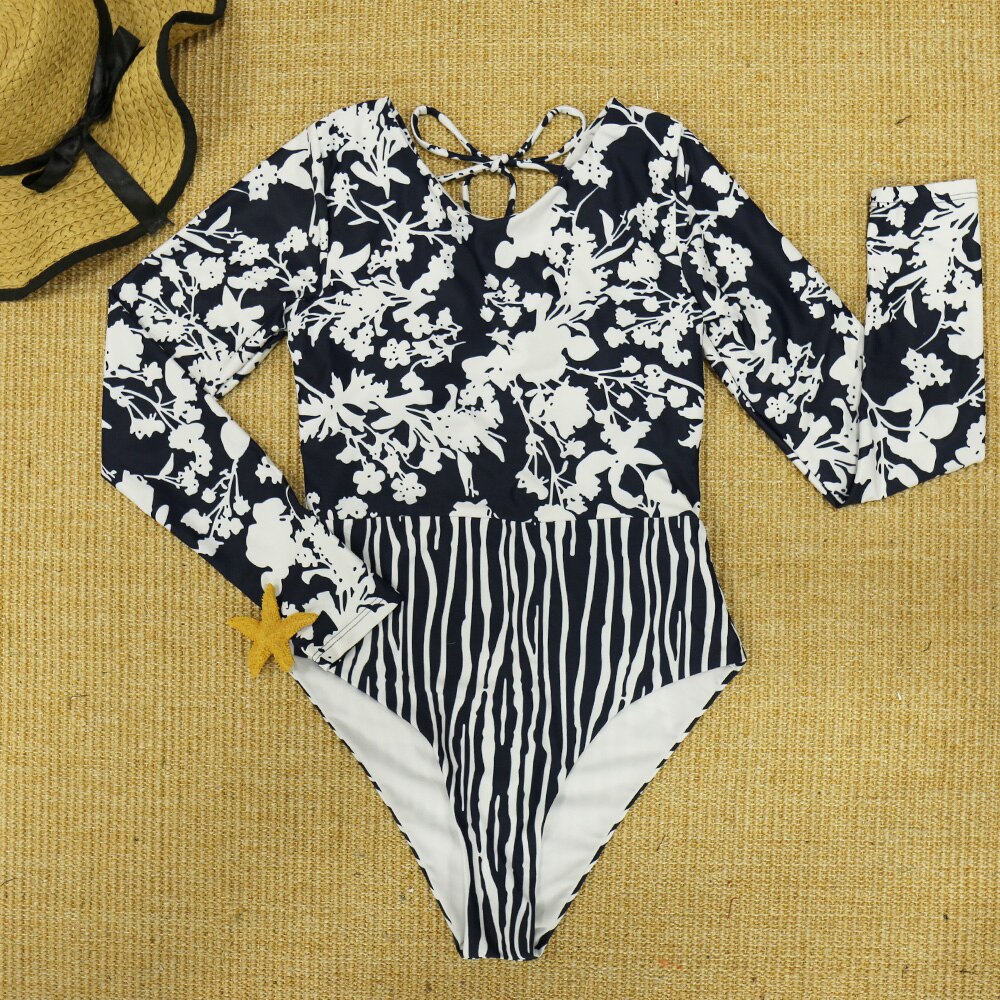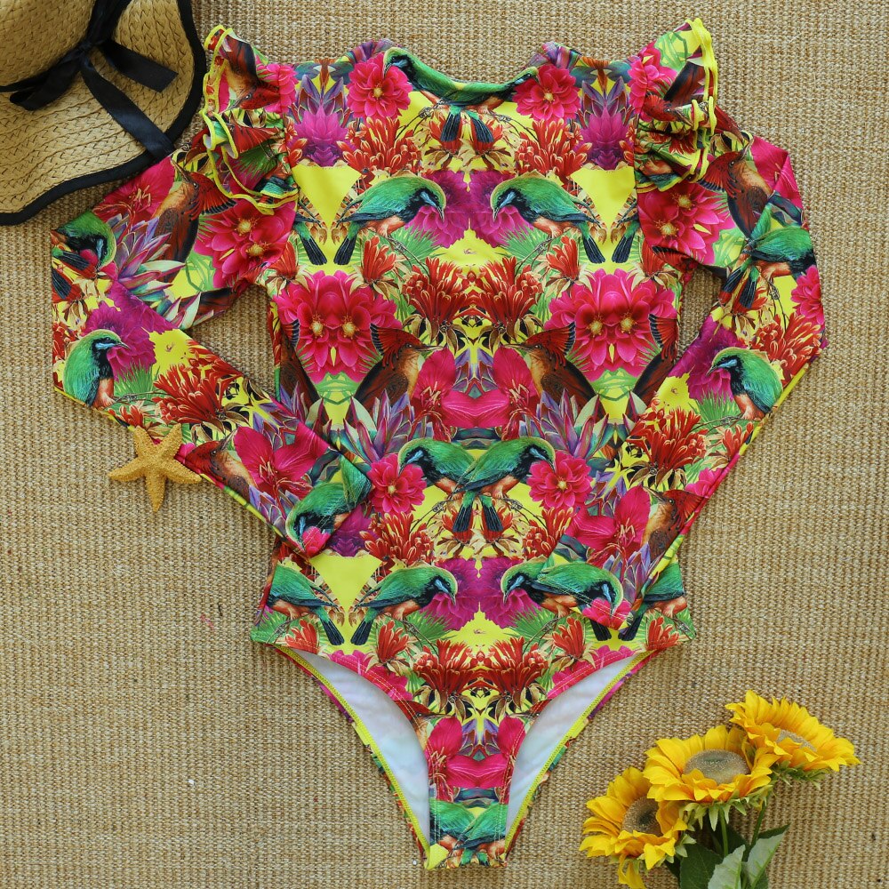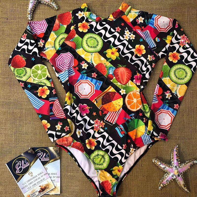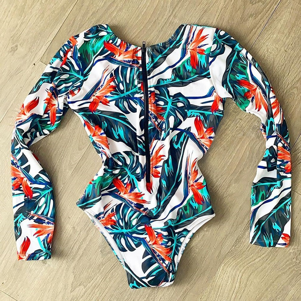 Long Sleeve Print Floral 2021 New One Piece Swimsuit Swimwear Women Zipper Bathing Suit Retro Swimsuit Vintage Surfing Swim Suit