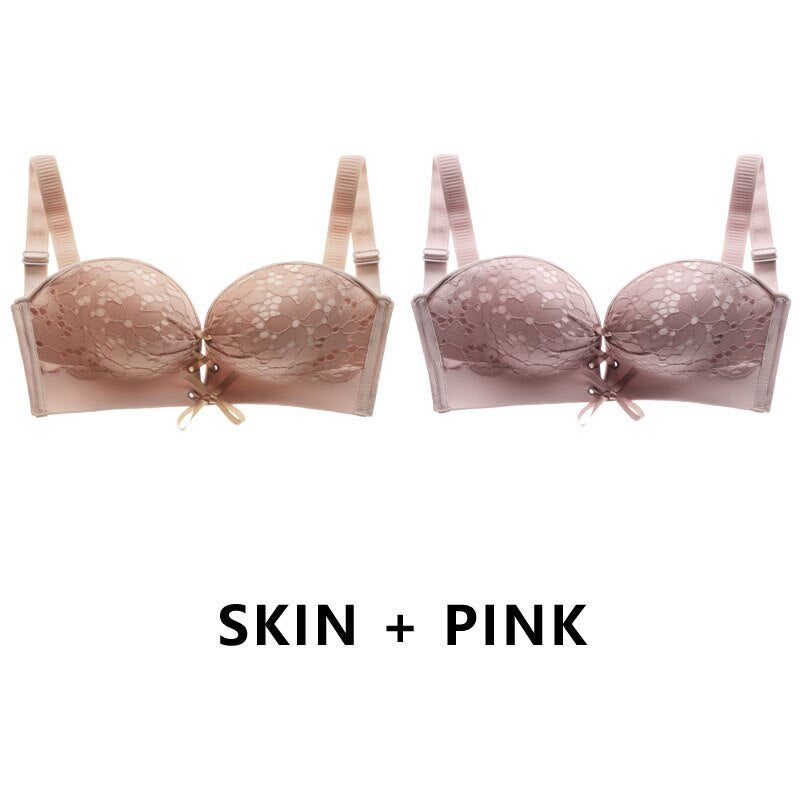 Meet'r 2 PCS/Set Sexy Women Strapless Bra Temptation Super Push Up Invisible Bralette Small Breast Lace Brassiere Lingerie Tops