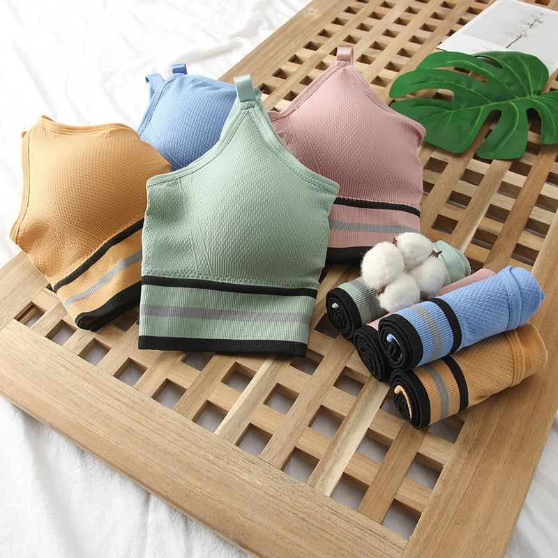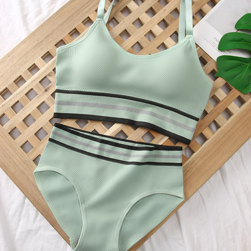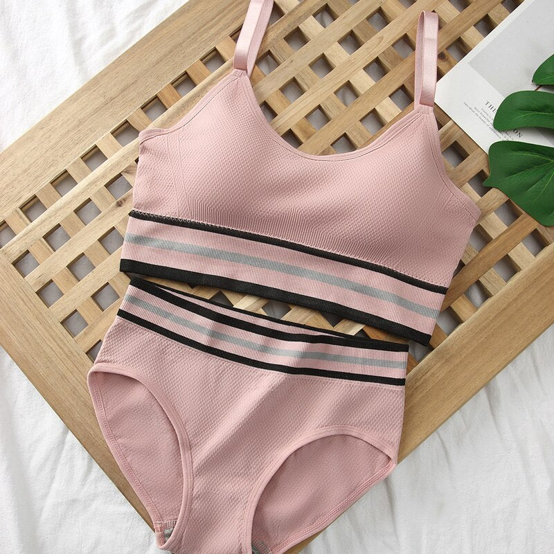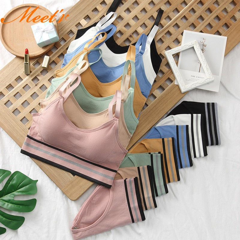 Meet'r Women Bra Panties Set Seamless Top Female Sport Crop Top Beauty Back Bralette Brief Sexy Lingerie Fitness Underwear Set