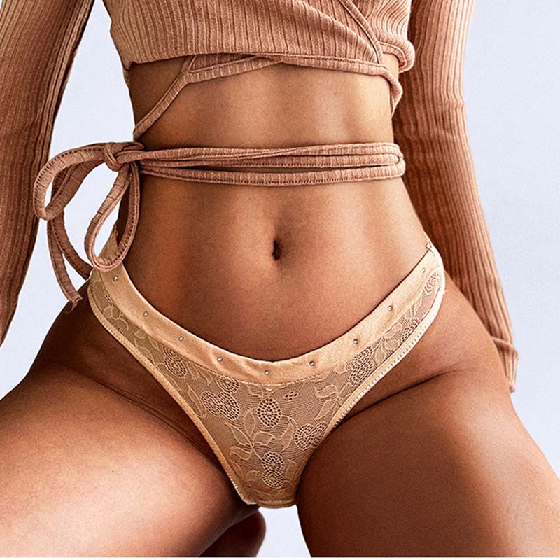 Meet'r Women Drill Thong Sexy Lace Lingerie Low-Waist Panties Transparent Briefs Hollow Out Temptation Underwear Female G String
