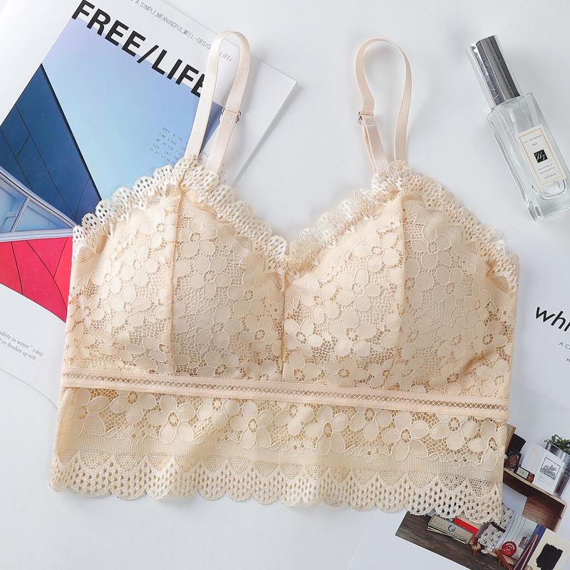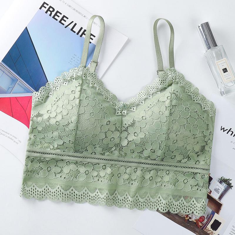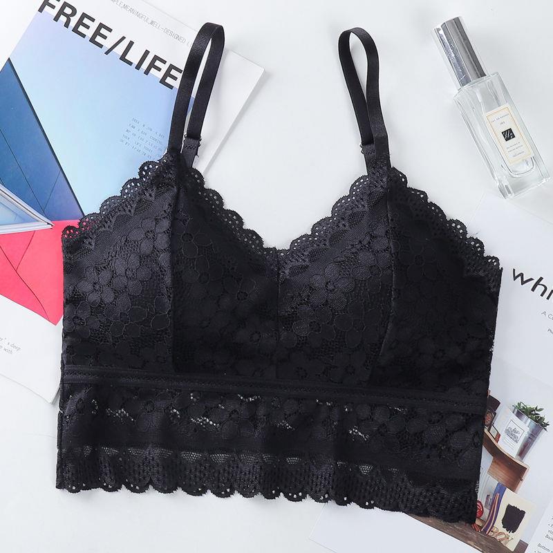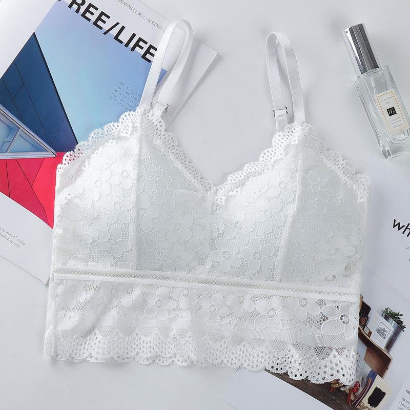 Meet'r Women Sexy Hollow Out Bralette Solid Color Beauty Back Lace Underwear Vest Female Add pad Wireless Bra Seamless Lingerie