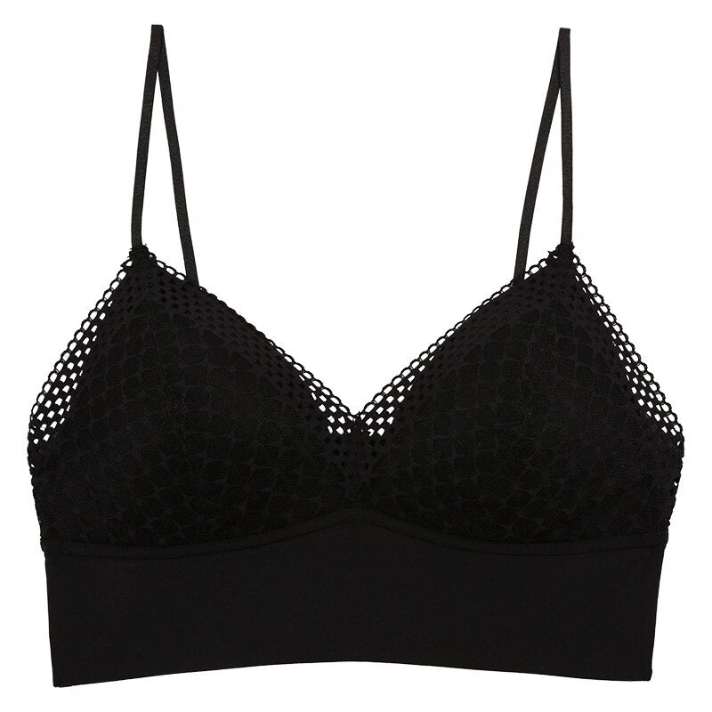 Meet'r Women Top French Triangle Cup Underwear Lace Bra Sexy Wireless Breathable Female Push Up Solid Bralette Lingerie