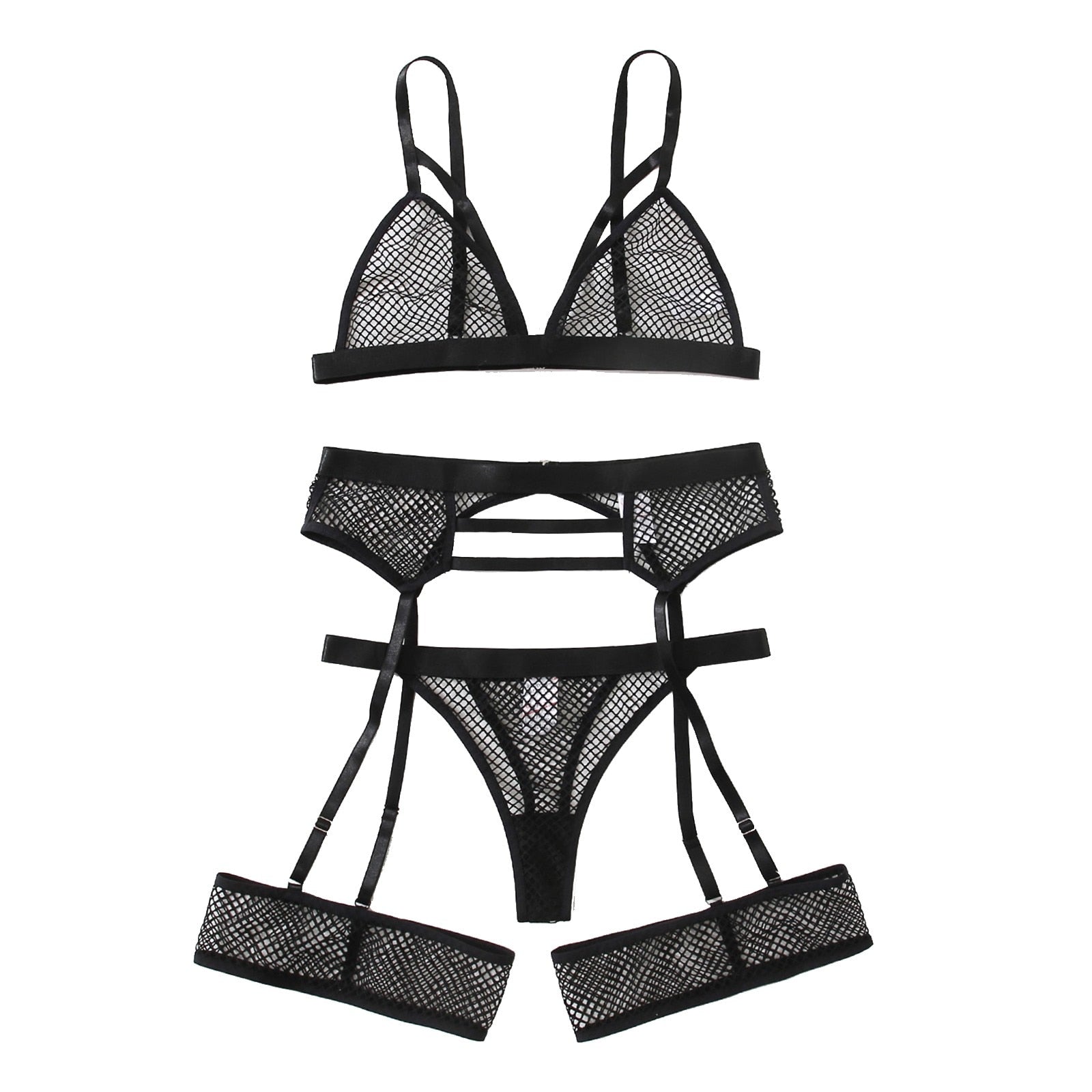 Mesh Perspective Sexy Lingerie Women Underwear Set Erotic Hot Seamless Bra Thong Garter Lingerie Set Lenceria Sensual Mujer 3Pcs