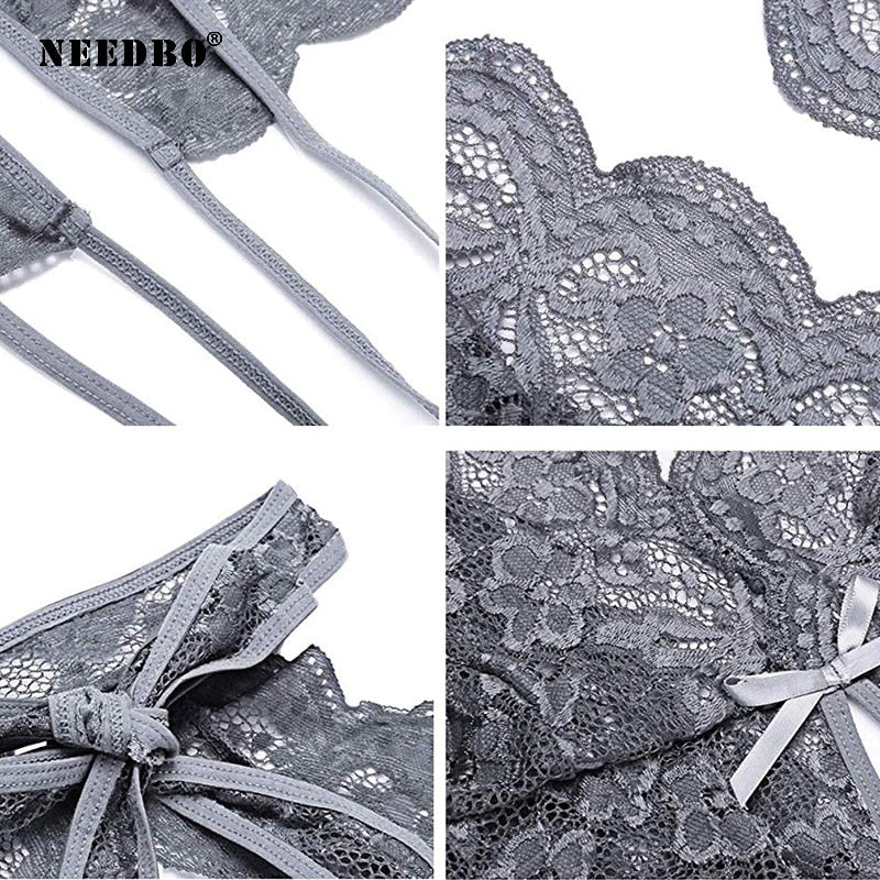 NEEDBO Elegant Thong Bodysuit Top for Women Bodysuit Women Sexy Lace Backless Overalls Femme Transparent Bodysuit Mujer Catsuit