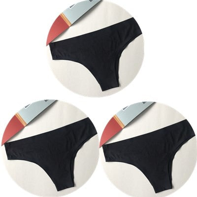 New Fashion Ice Silk Seamless Briefs Plus Size Sexy Breathable Solid Pure Color Black Low-Rise Panties Women Underwear Briefs