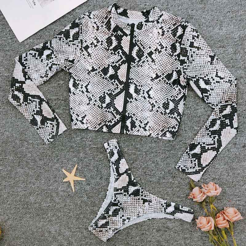 New Long Sleeve Zipper Bikini Women Swimwear Sport Print Swimsuit Two-pieces Bikini set Brazilian Bather White Bathing Suit Swim