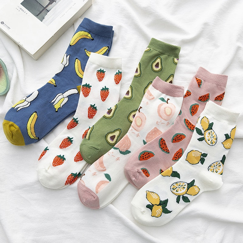 New Summer Cartoon Fruit Cotton Watermelon Lemon Strawberry Banana Avocado Women Korean Version of Socks Fashion Street Socks