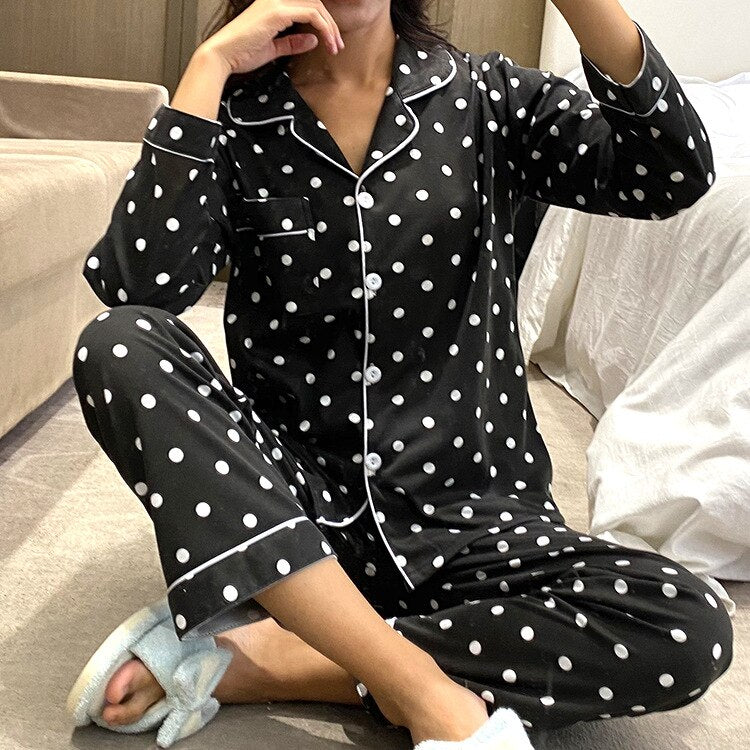 Plaid Long Sleeve Women Pajama Set Button Top+Pants Pyjamas Polka Dot Pajamas Sleepwear Homewear Suit Matching Sleep Pyjamas