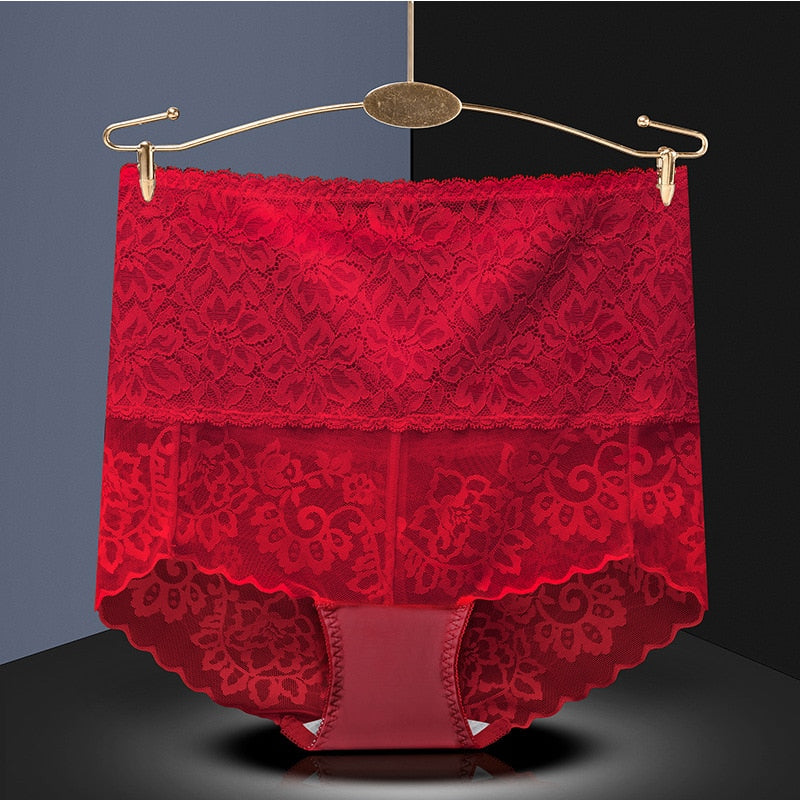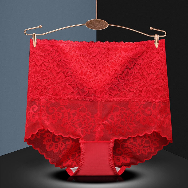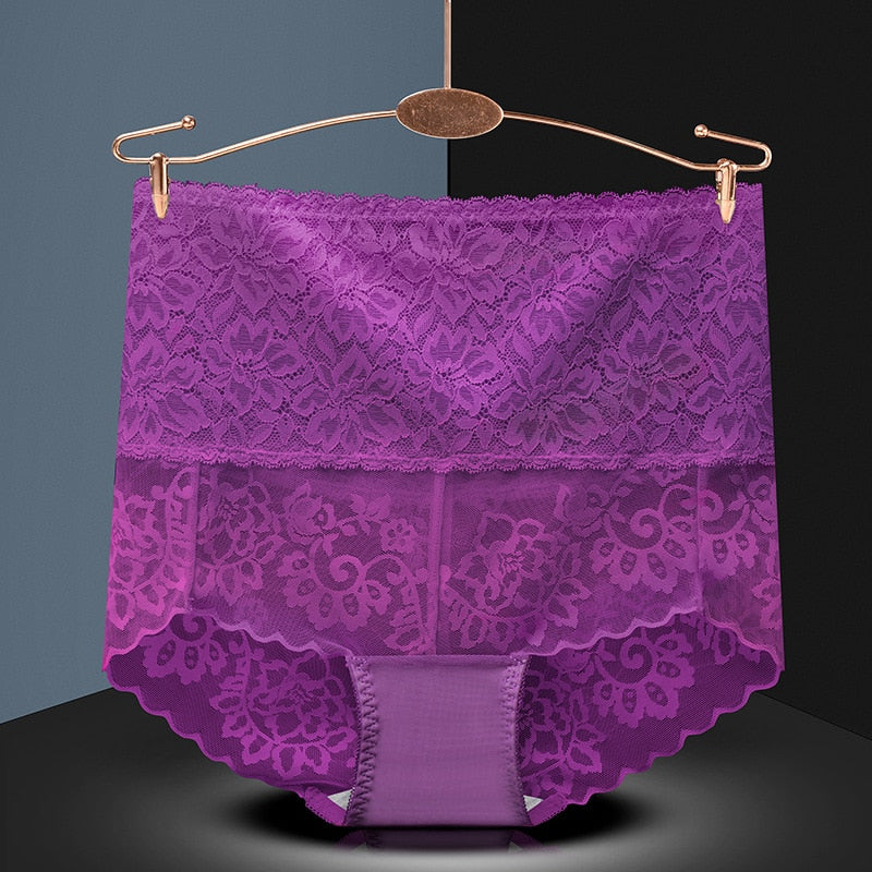 Plus Size Butt Lifter Panties Sexy Lace High Waist Briefs Women Flowers Underwear Girdle Waist Pants Transparent Silk Knickers
