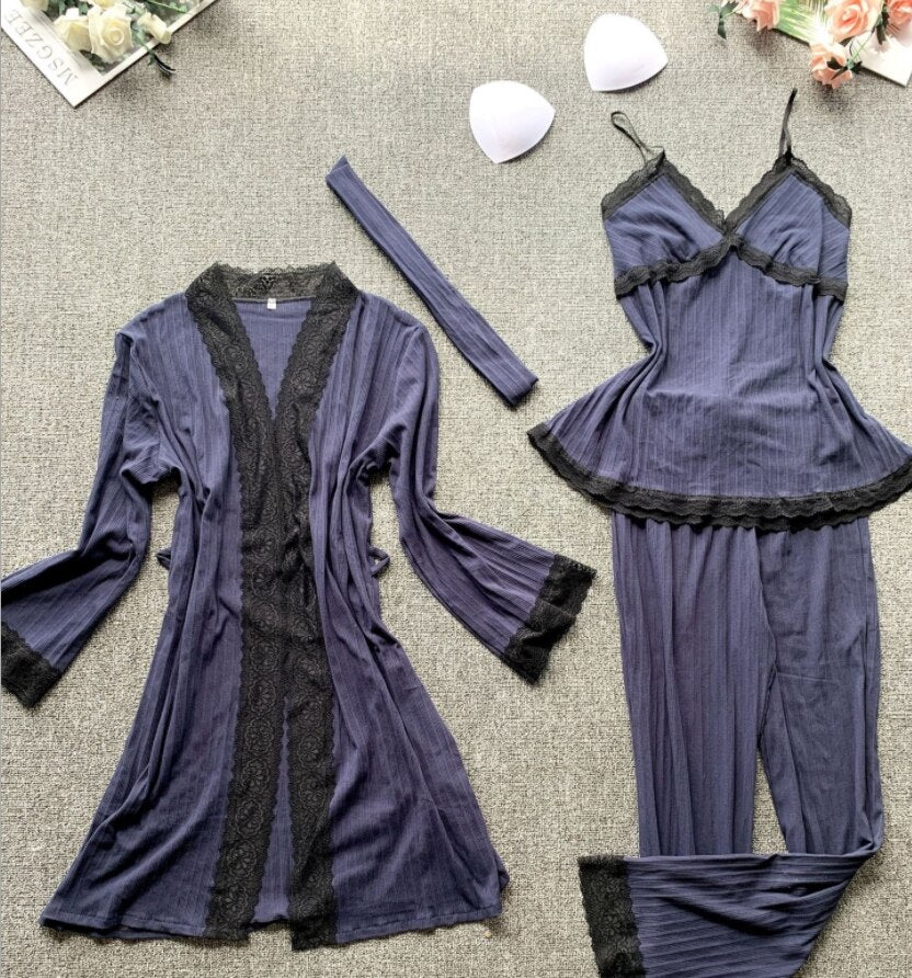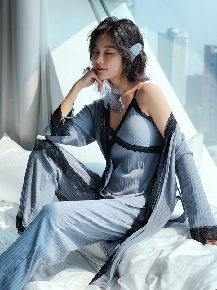 Robe Ensembles Pijamas Women Cotton 3 Pieces Pijamas Feminino Night Suits Intimates Women's Lingerie 2020 Underwear & Sleepwears
