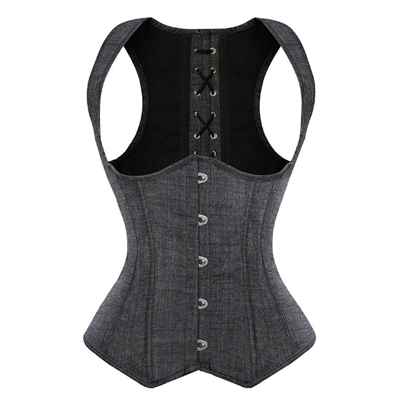 Sapubonva bustier corset vest top underbust corset straps waist cincher sexy corsets for women party gray clothing costume 6xl