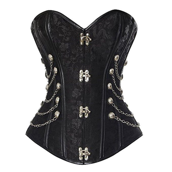 Sapubonva steampunk corsets and bustiers plus size black brown leather corset steel bone spiral tops chain gothic pirate vintage