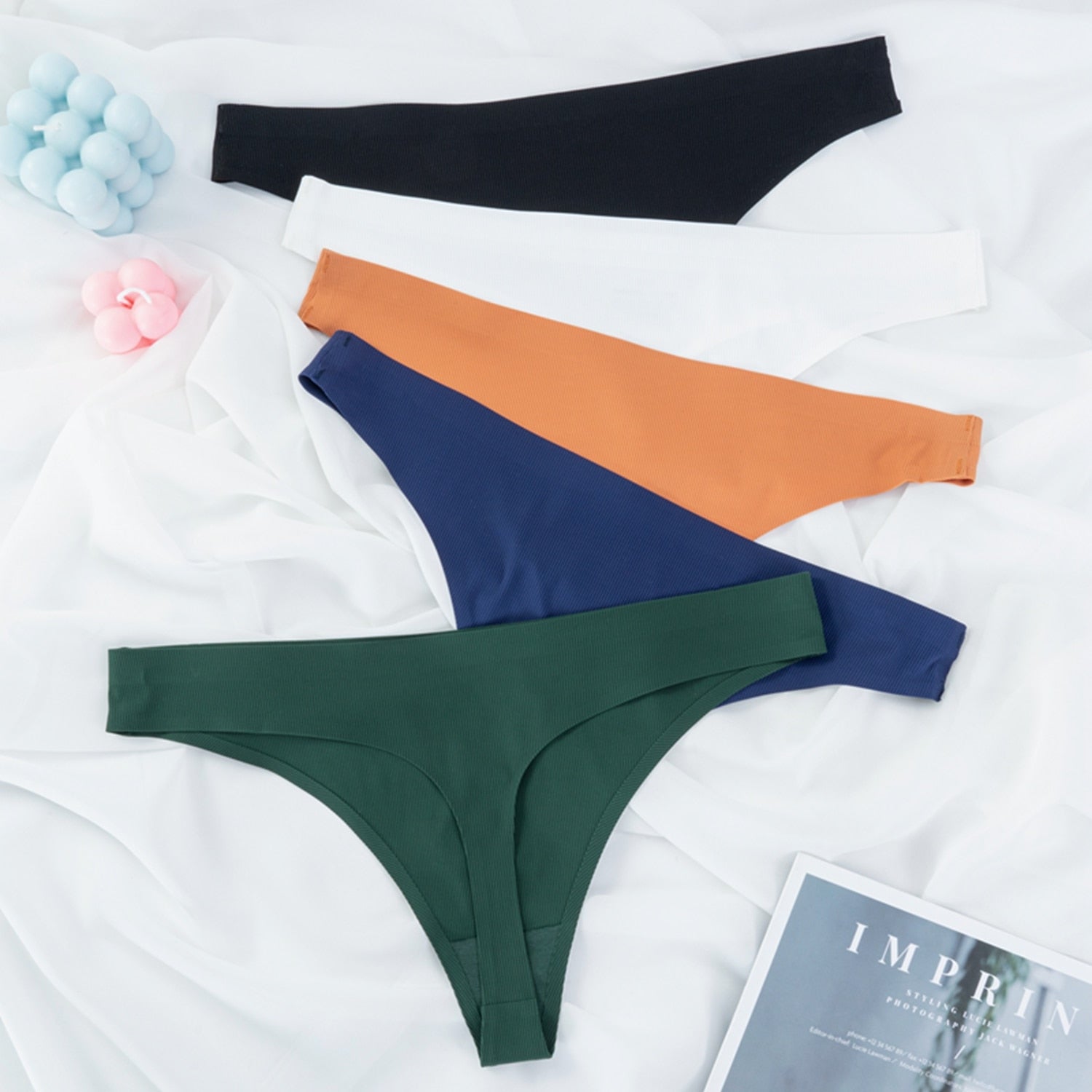 Seamless Panties Women Briefs Ultra-thin G-string Low Rise Solid Color Stripe T back Underwear Female Breathable Ice Silk Thong