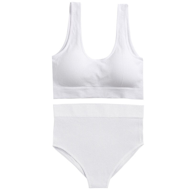Seamless Women Sexy Bra Set U-back Cropped Top And Hight Waist Pantys Comfortable Underwear Suit S-XL Ultra-thin Lingerie Girls