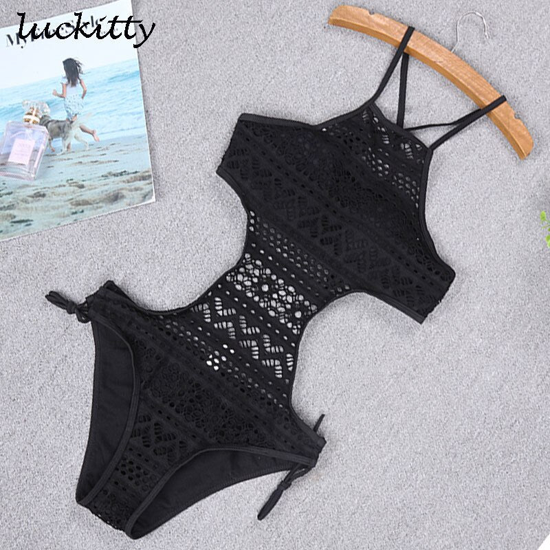 Sexy Backless Black Mesh Hollow Cut Out Trikini High Neck Bathing Suit Monokini Thong Swimwear Women One Piece Swimsuit