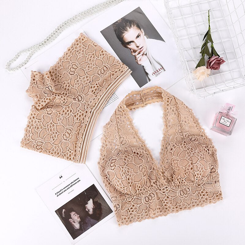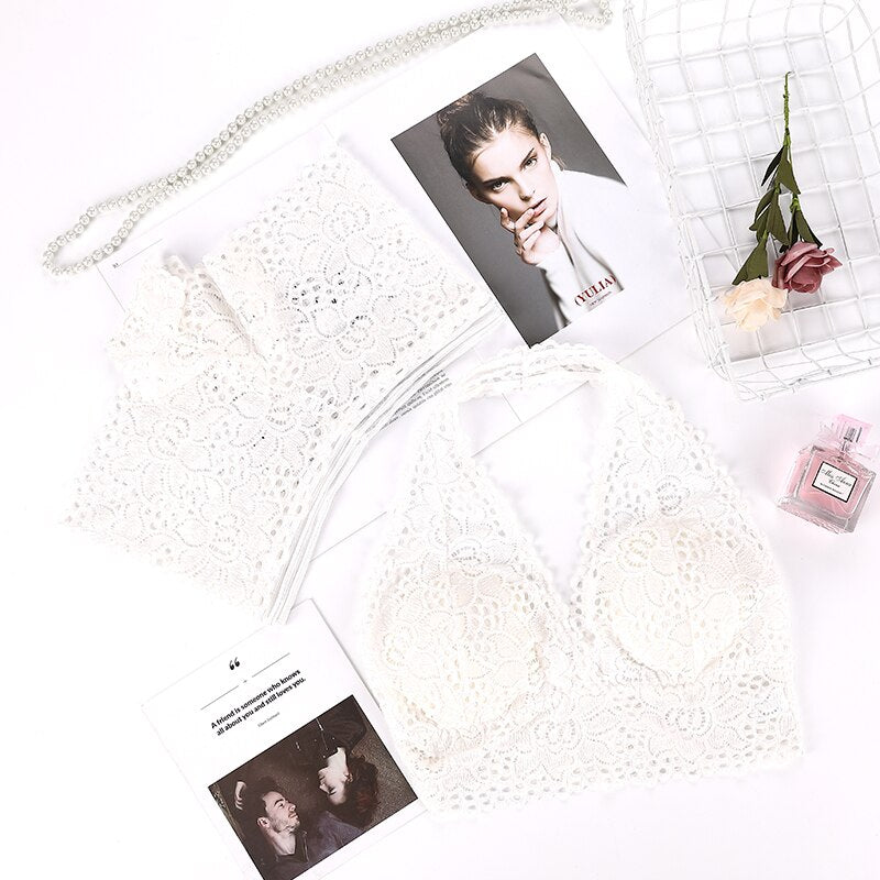 Sexy Bra Set Women Push Up Seamless Bra Panty Underwear Set Ladies Wireless Halter Lace Hollow Intimates Briefs Lingerie Set