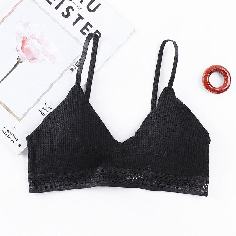 Sexy Cotton Hollow Out Bras For Women Underwear Solid Color Comfort Wireless Bra Lingerie Fashion Seamless Padded Bralette New