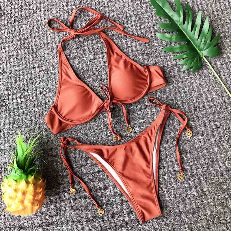 Sexy High Cut Thong Bathing suit Brief Bikini Brazilian Strappy Swimwear Women Solid Biquini Swim Beach Micro Bikini set 3605