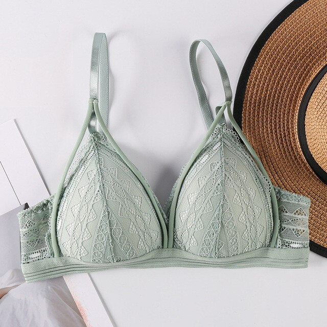 Sexy Lace Bralette Wireless Bras For Women Transparent Underwear One-Piece Floral Lace Brassiere Push Up Lingerie Backless Bra