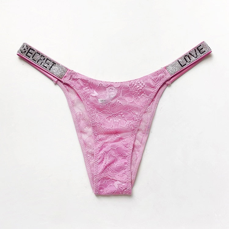 Sexy Lace Transparent Panties Women G String Love Secret Rhinestone Thong Lingerie Seamless Low Rise Intimates Underwear lenceri