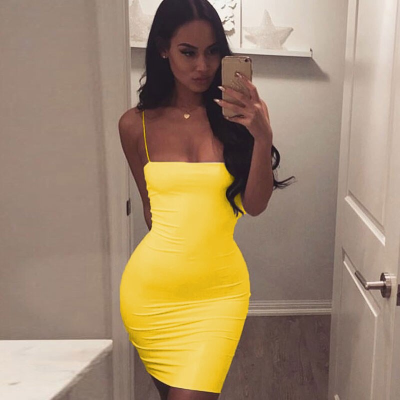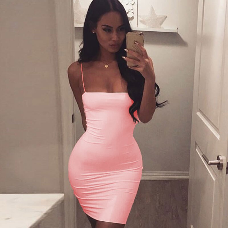 Sexy Robe Femme Straps Slim Sleeveless Halter Stretch Mini Dress 2020 Summer Women Clothes White Black Spaghetti Strap Dresses