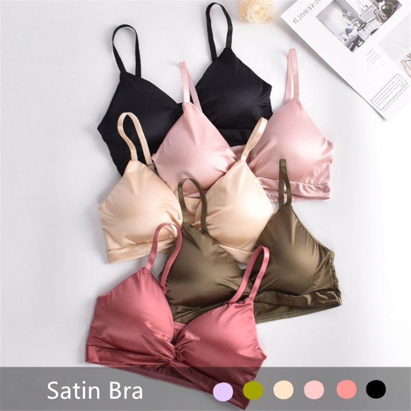 Sexy Satin Bra Triangle Cup Shaping Bralette Seamless Lenceria Push-up Beauty Back Tube Underwear Lingerie нижнее белье женское