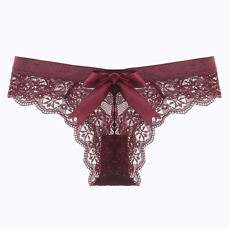 Sexy thong lace underwear ladies back bow briefs 7 colors ladies thong T thong transparent underwear cute panties