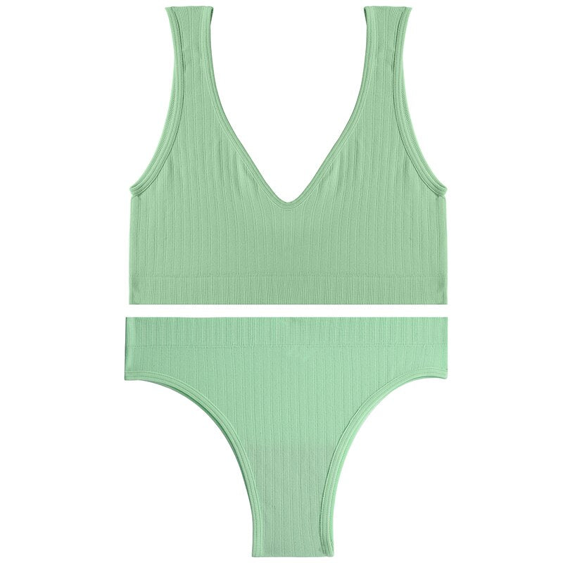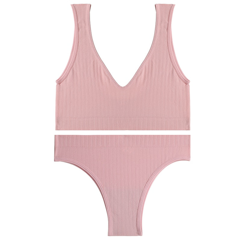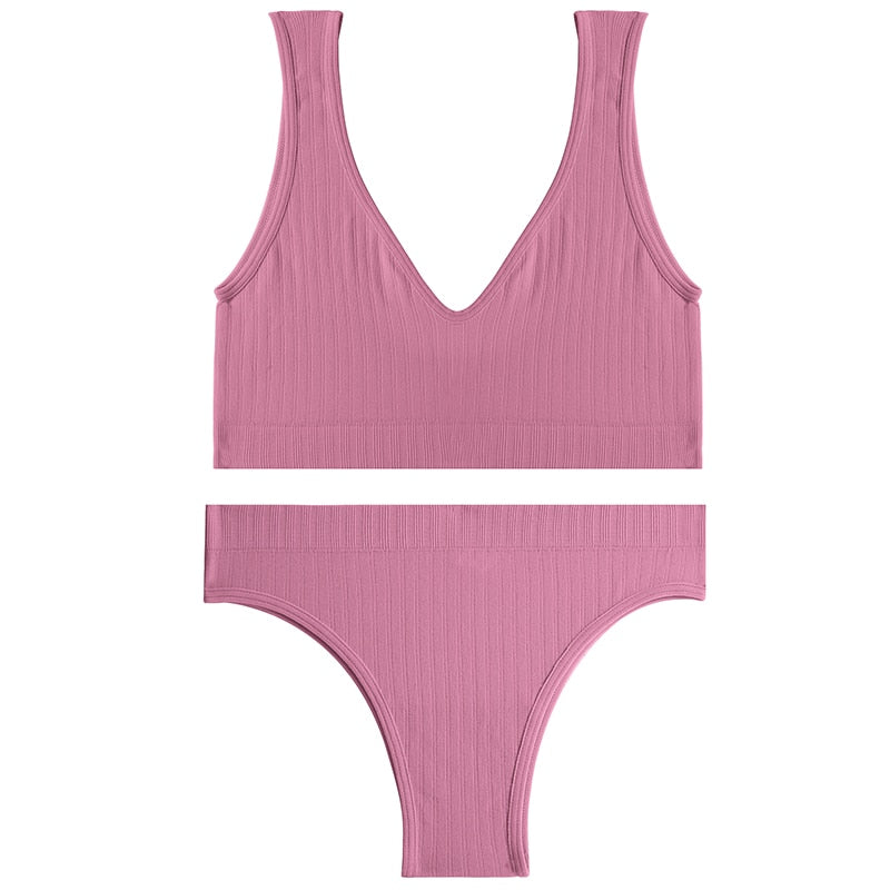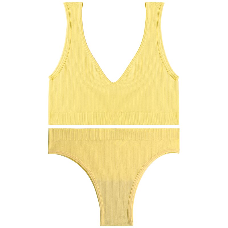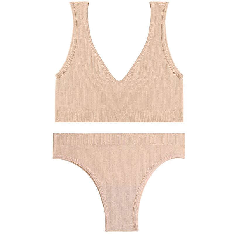 Sexy Women Seamless Lingerie Tops Thong Panty Set U-shaped Back Fitness Bralette Push Up Sports Bra Suit Femme Underwear Girls
