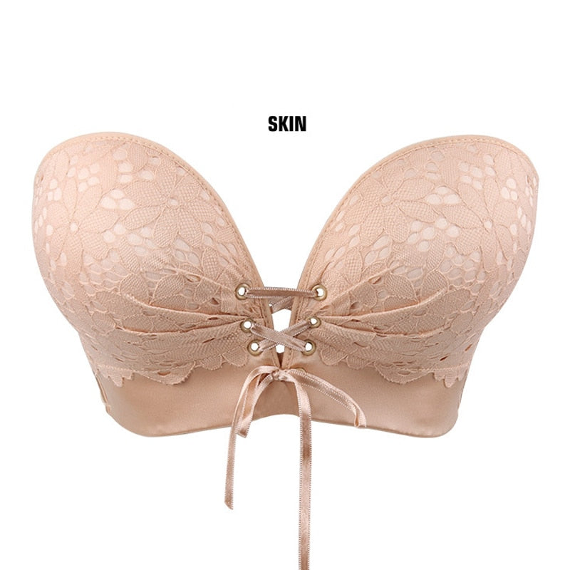 Sexy Women Strapless Bra Romantic Temptation Super Push Up Invisible Bralette Meet'r Small Breast Lace Brassiere Lingerie Tops