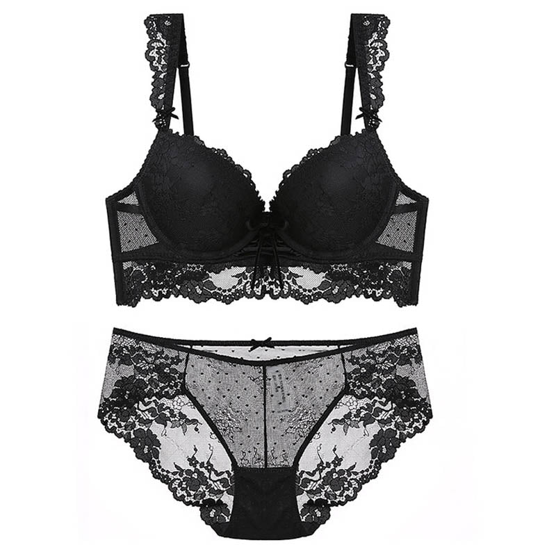 Sexy Women's Underwear Set Lace Push-up Bra And Panty Sets Meet'r Hollow Embroidery Gather Brassiere Gathered Lingerie Set
