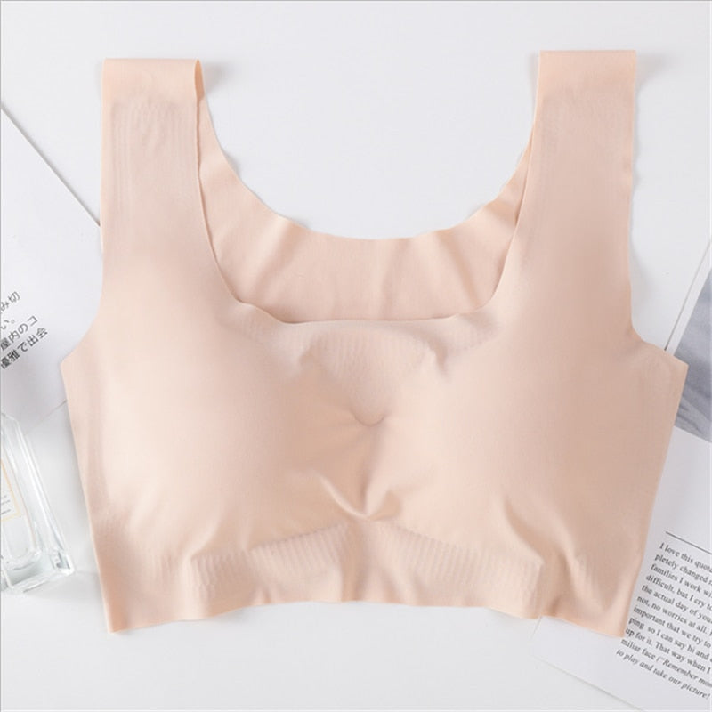 Silk Vest Bra Women Thin Push Up Seamless Underwear Soft  Ice Silk Comfortable Sleep Top With Chest Padded топ женский Bralette