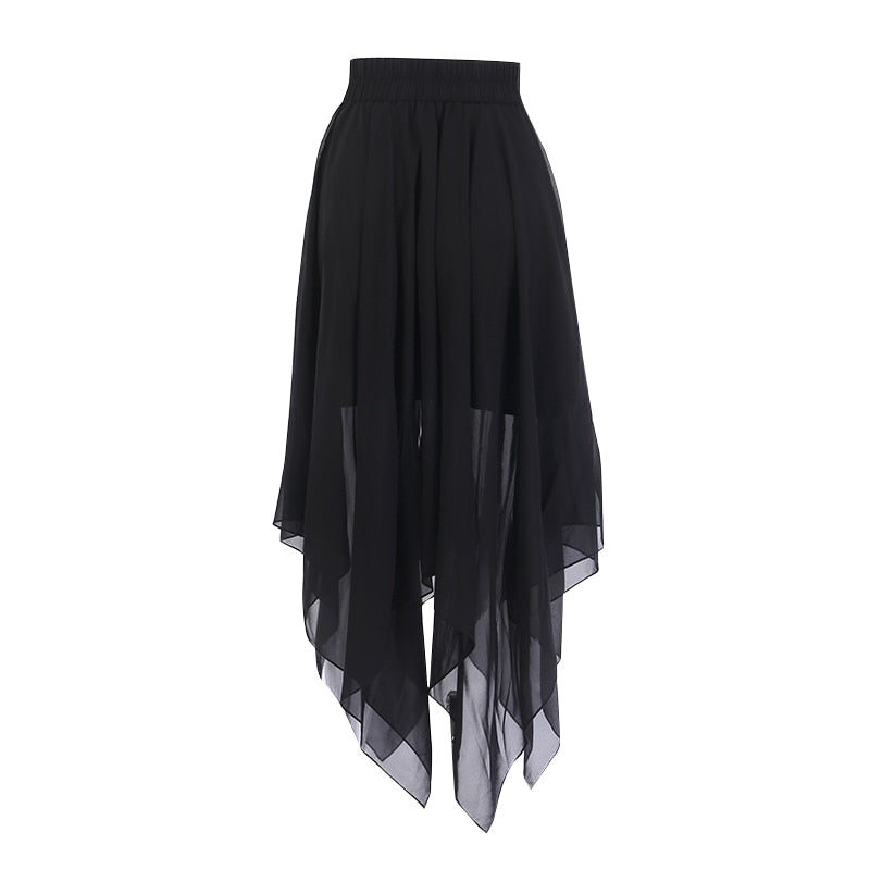 Summer Mesh Irregular Women Skirts Pentagram Zipper Black Punk Skirts Gothic Darkness Lady Skirt Casual Loose Streetwear Skirts