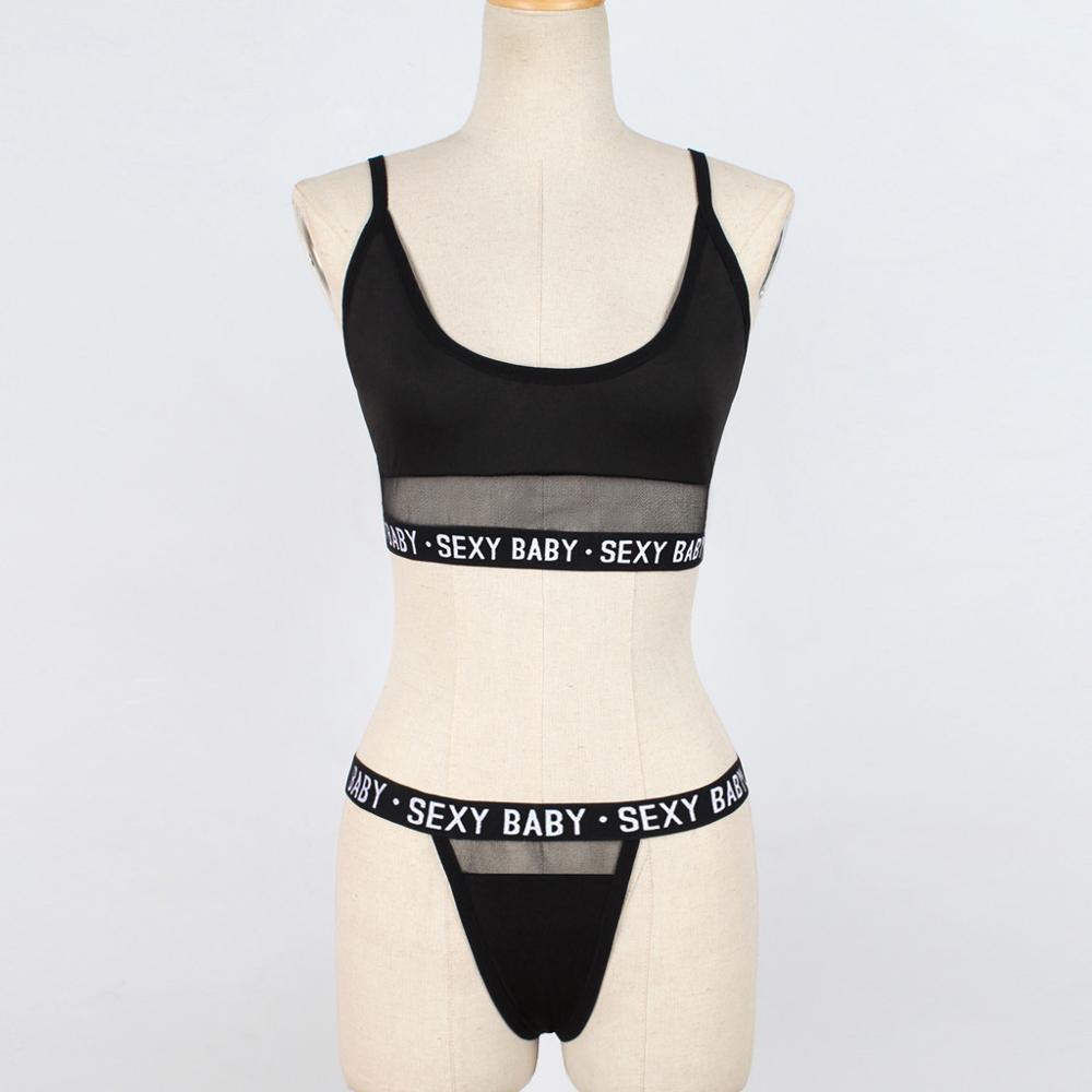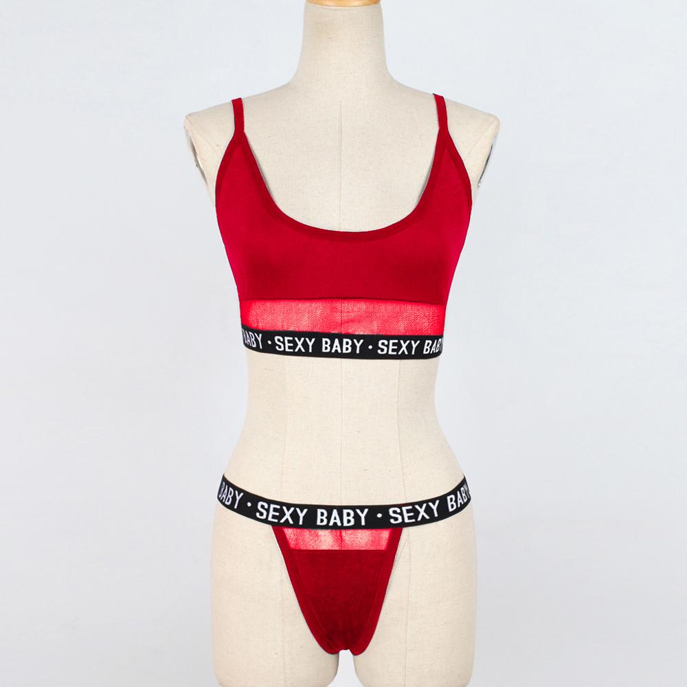 Summer Sexy Fashion Letter Solid Patchwork  Underwear Women Set Women Lingerie Underwear G-String Set Lingerie Femme Lingerie