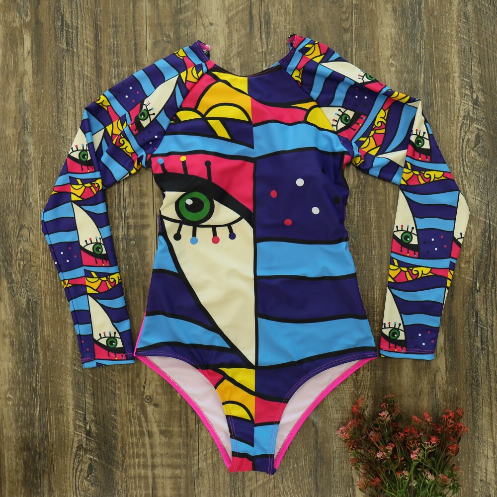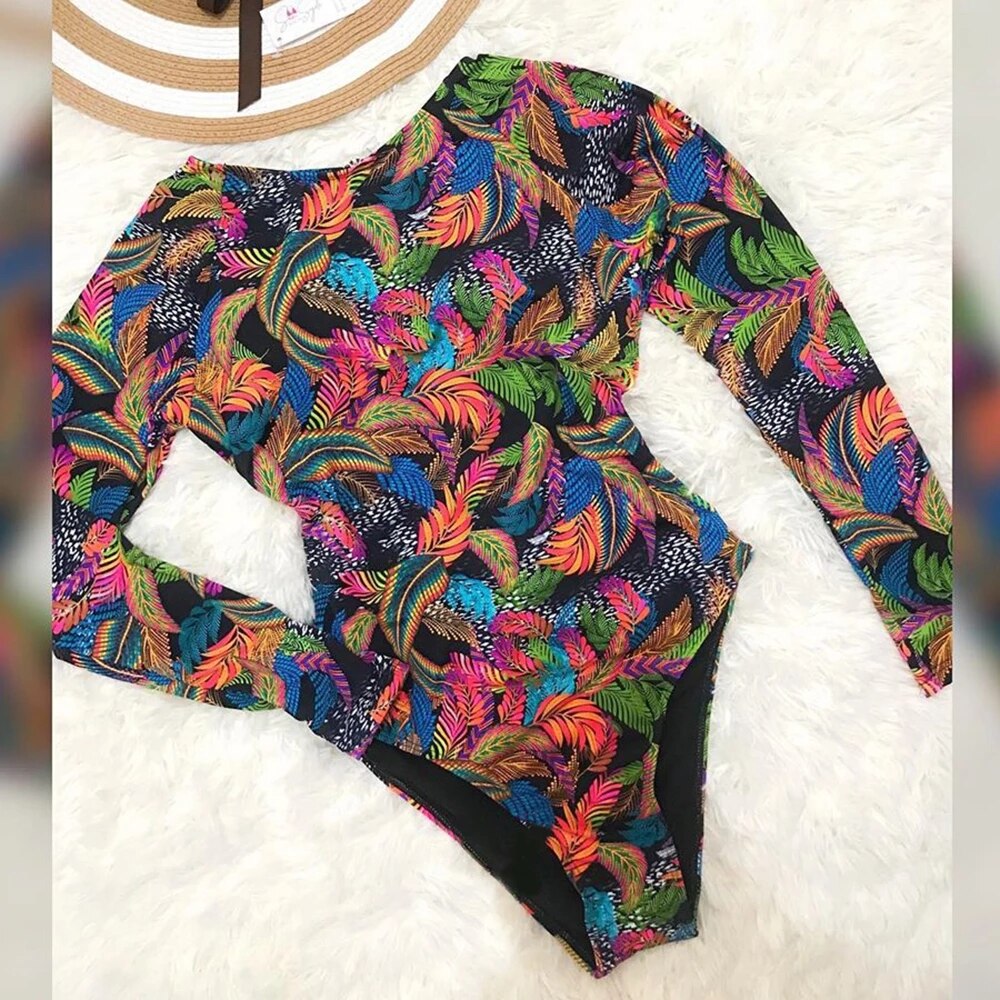 Swimwear Women Print Floral 2020 New One Piece Swimsuit Long Sleeve Bathing Suit Retro Ruffle Strappy Vintage Beachwear Surfing
