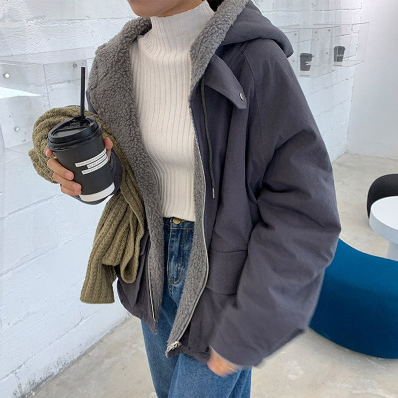 Teddy Coat Women Parkas Oversized Hooded Jackets Winter Thicker Lamb Wool Hooded Outwear Reversible Korean Style Jacket Coat