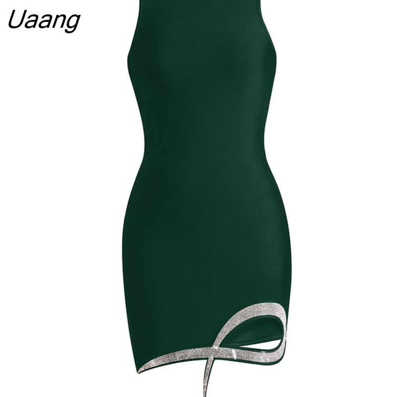 Uaang Arrival Women Sleeveless Sexy Diamond Bodycon Mini Dress Rayon Bandage Celebrate Nightclub Party Outfit Vestido