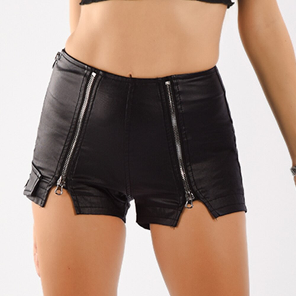 Uaang Black PU casual fashion summer shorts women clothing goth faux leather high waisted womens shorts y2k hot woman short pants