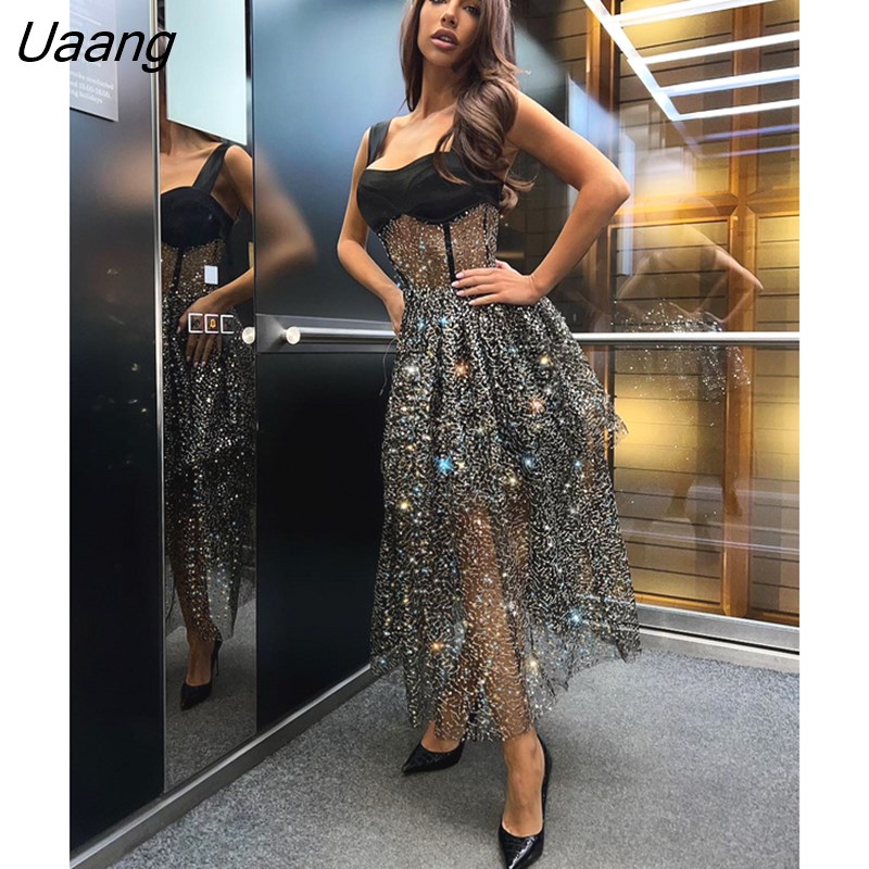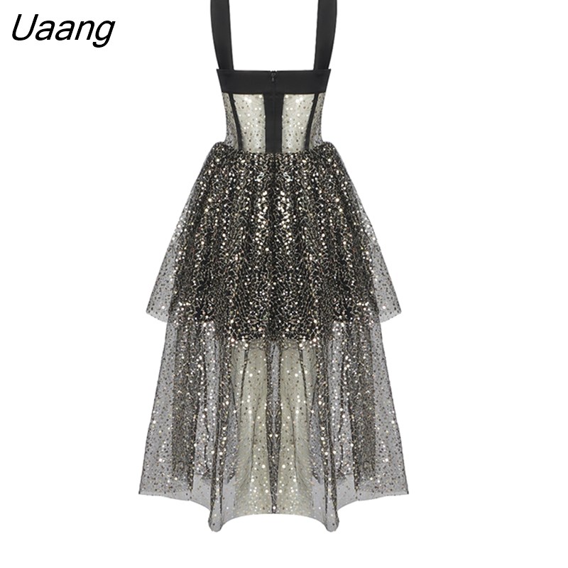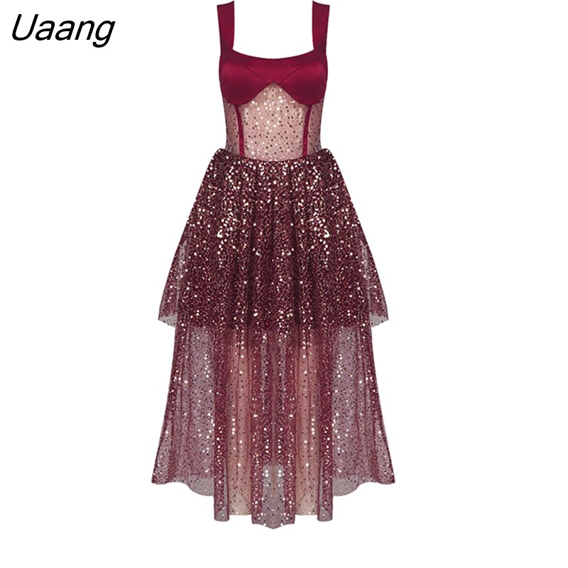 Uaang Quality Black Wine Sparkly Hollow Out Ball Gown Dress Elegant Club Party Dress Vestidos