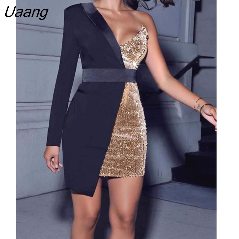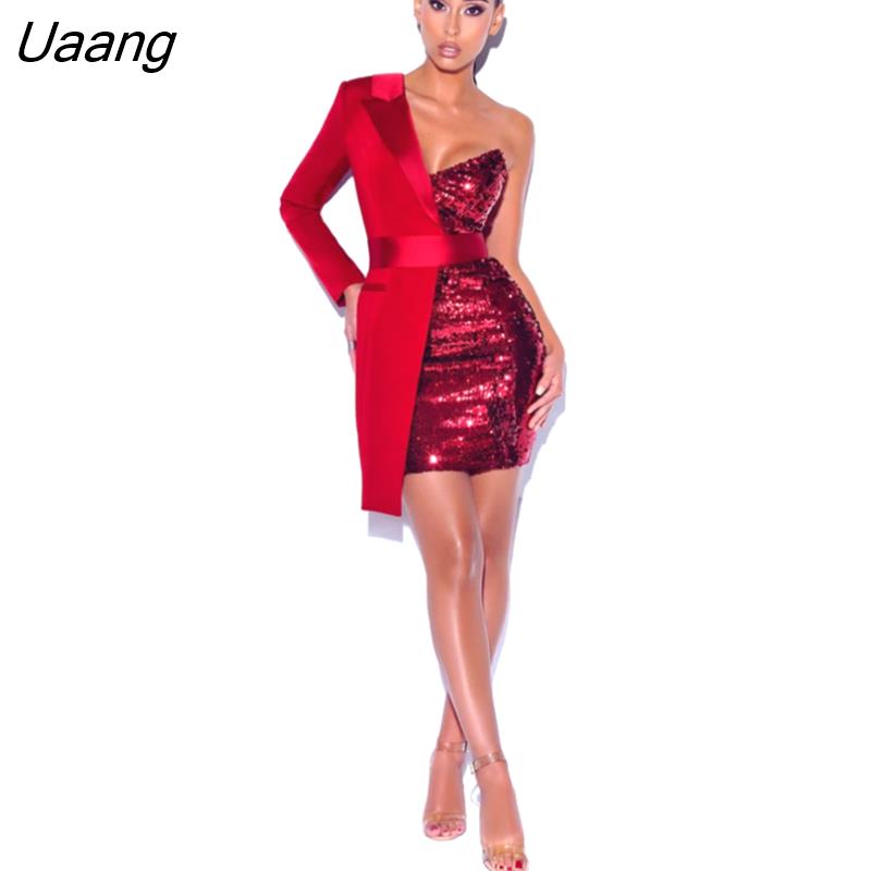 Uaang Quality Red Silver Night One Sleeved Sequin Crepe Tuxedo Blazer Dress Vesdioes