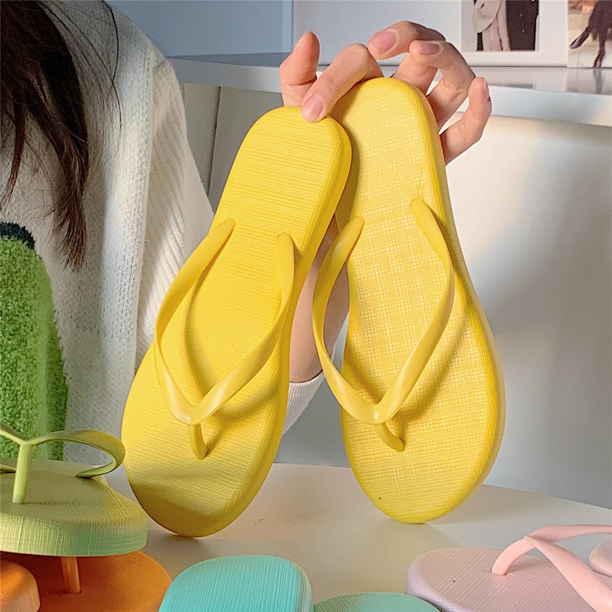 Uaang Summer Student Fashion Colored Beach Flip Flops Vacation Soft Bottom Bathroom Slippers Odor Proof Simple Flat Home Shoes