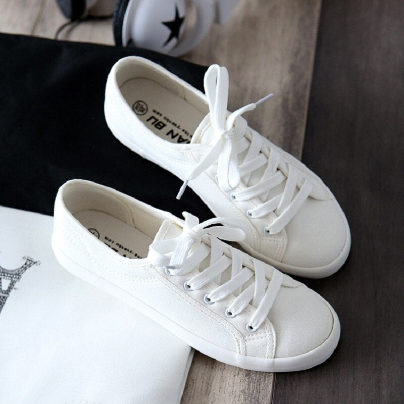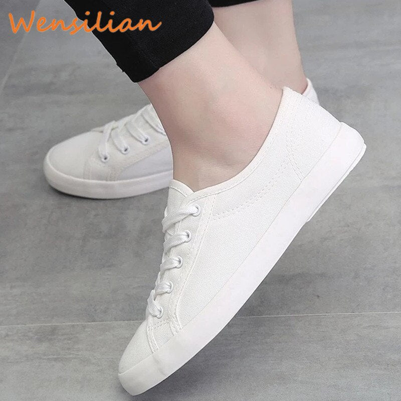 White Canvas Sneakers For Women Casual Vulcanized Flat Shoes Ladies Trainers Star Style Woman Lace Up PU 2019 Zapatillas Mujer