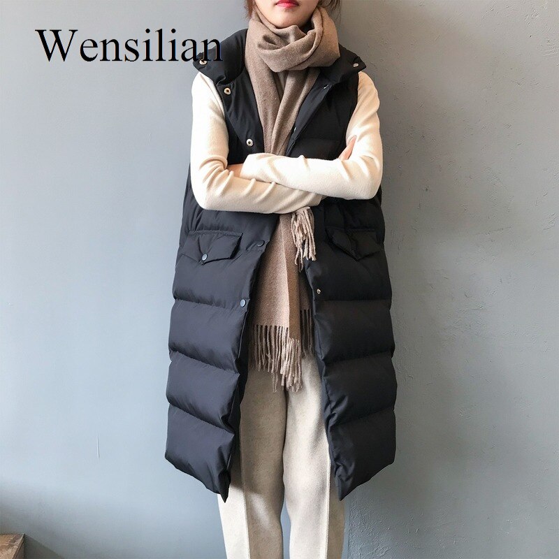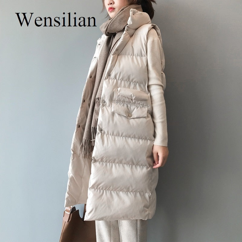Winter Down Coats Women Long Vest 2021 Ladies Stand Collar Sleeveless Jacket Female Padded Gilets Quilted Coats Chaleco Mujer