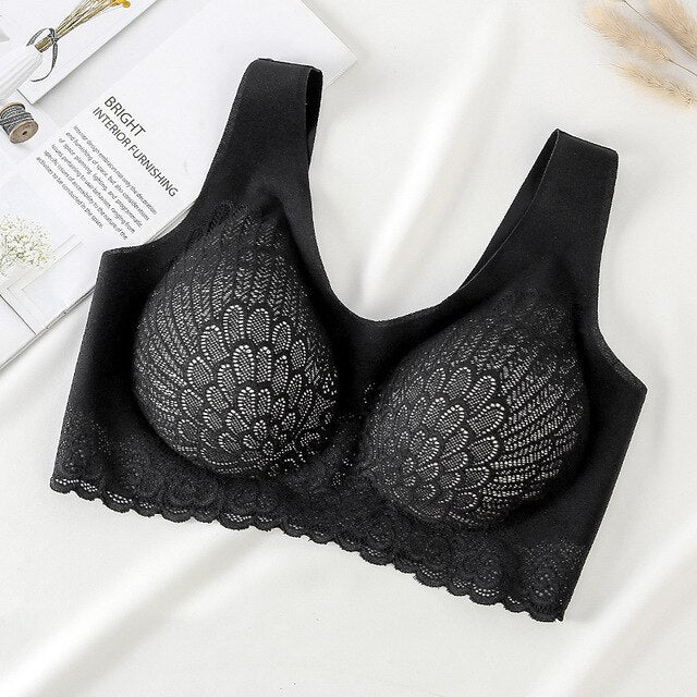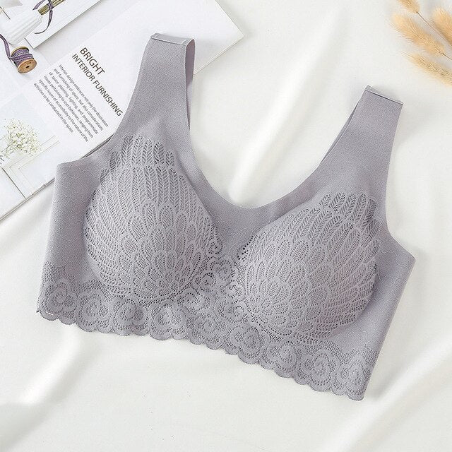 Women Bra Lace Underwear Seamless Bras Wireless Sexy Push Up Brassiere Gathers Pad Intimates Lingerie Beauty Back Latex Bralette