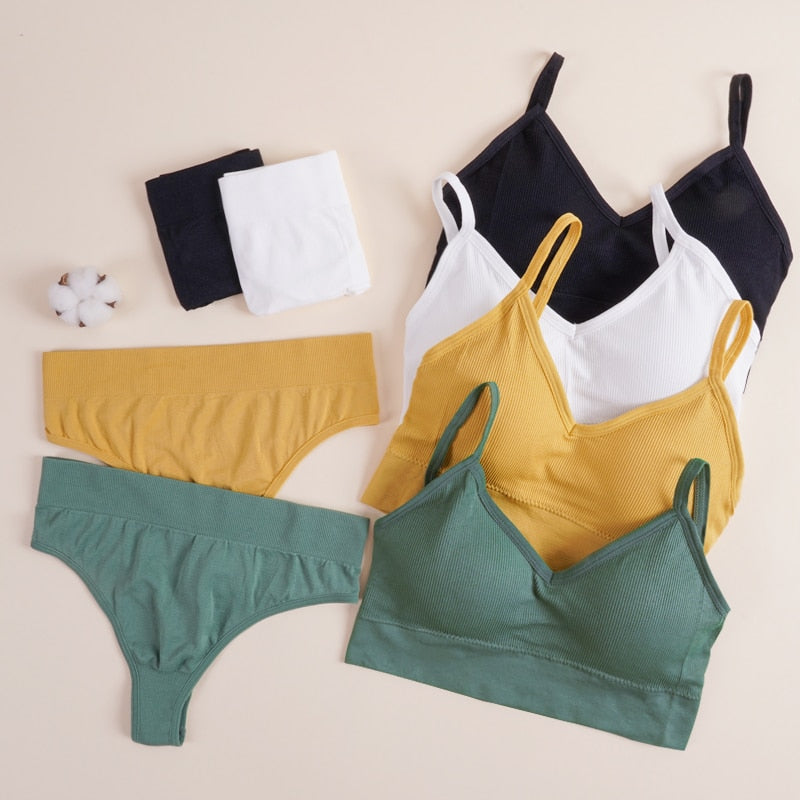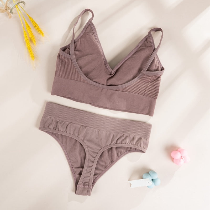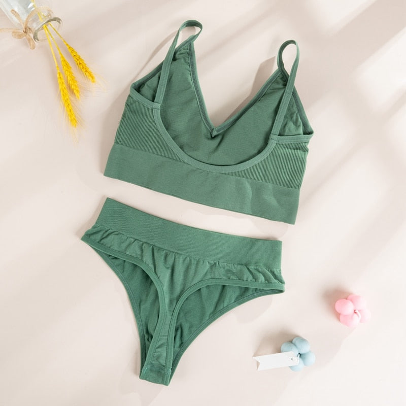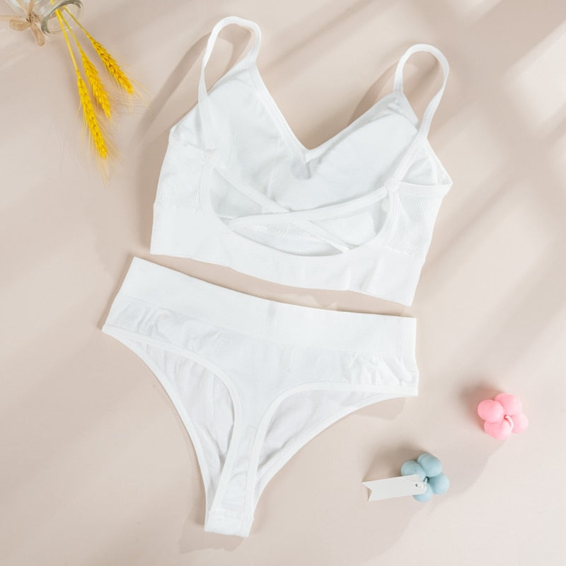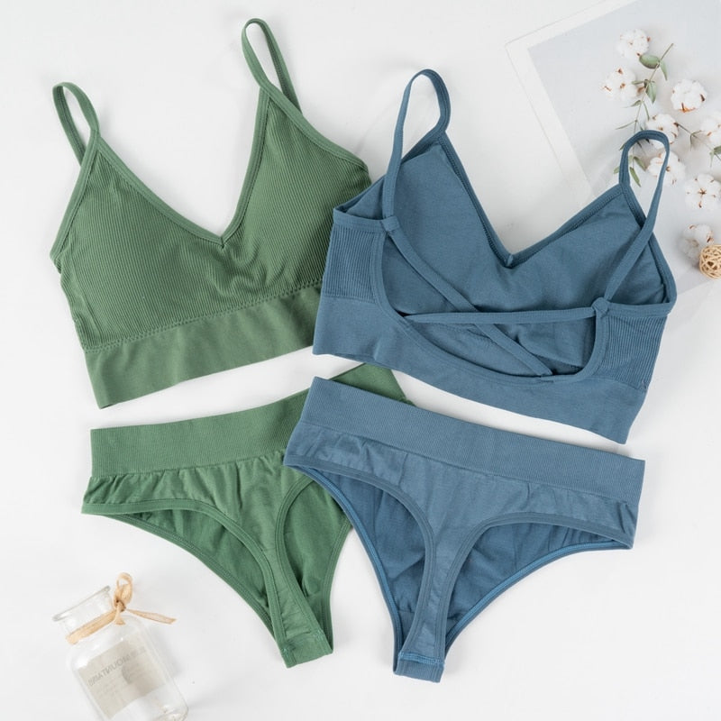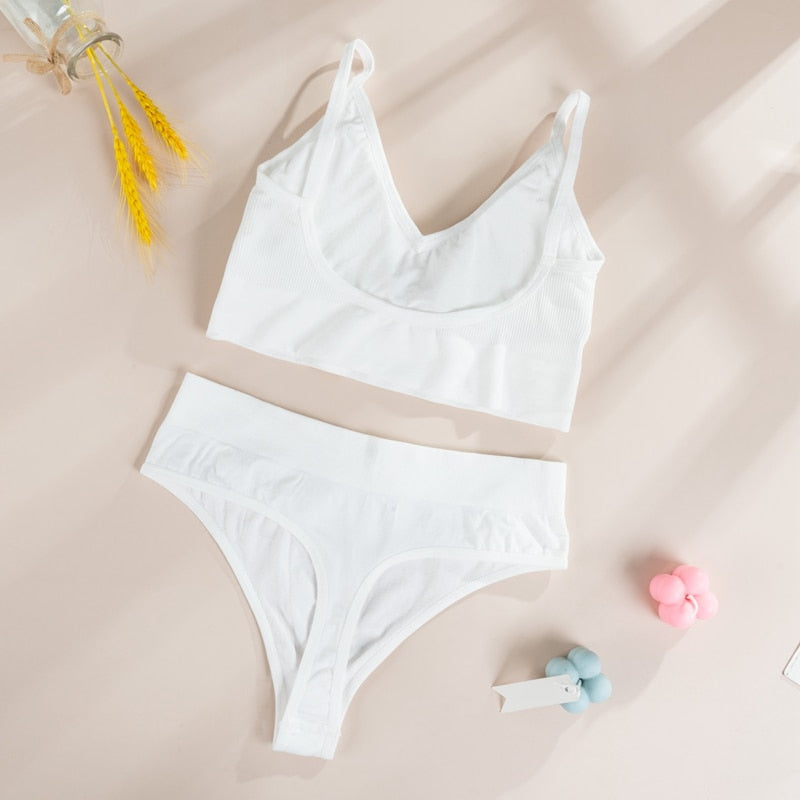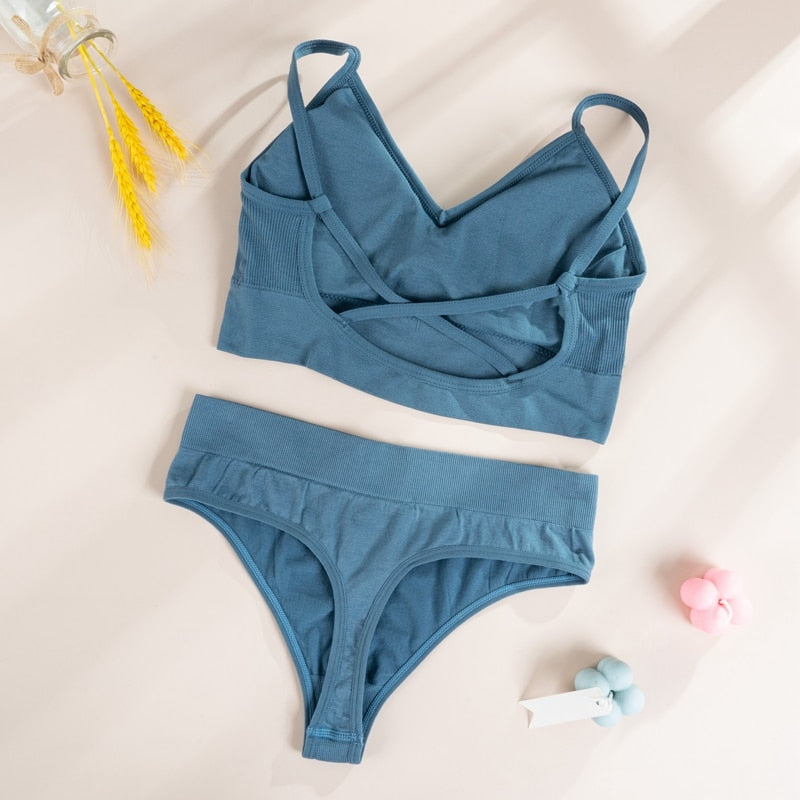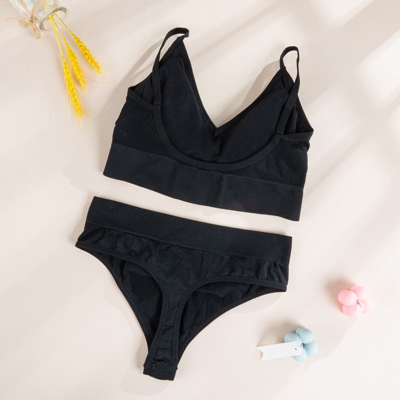 Women Bra Panties Set Sexy G-String Push Up Bra Crop Top Seamless Underwear Active Bra Thongs Female Top Lingerie Set