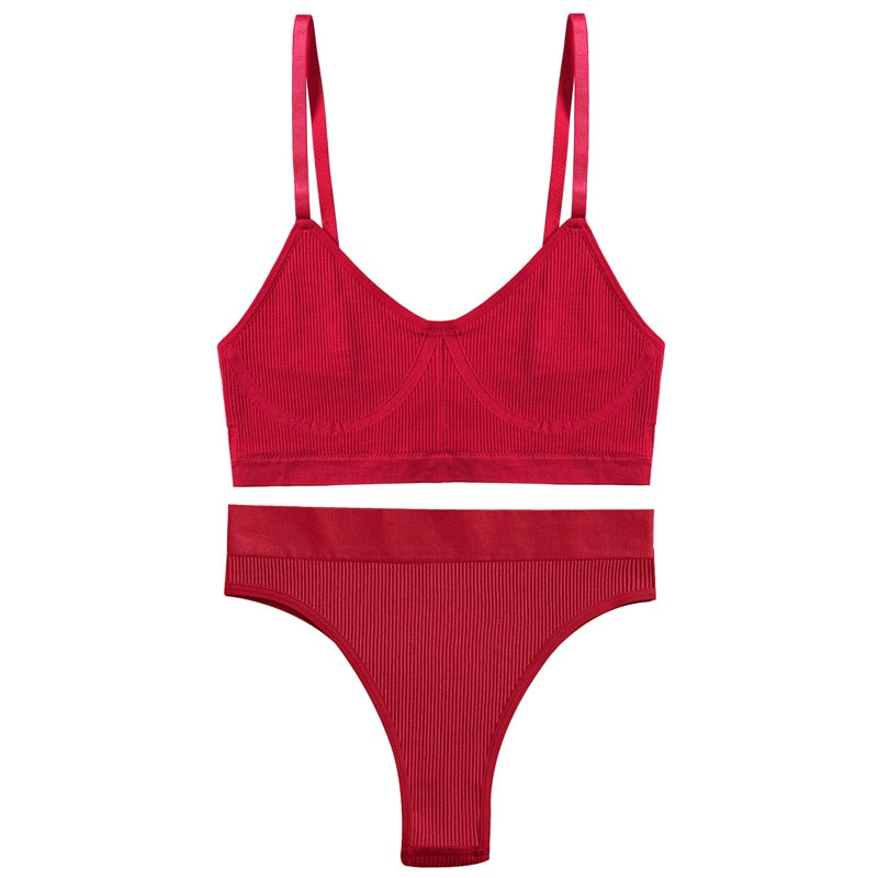 Women Bra Set Sexy Lingerie Female Underwear Bralette Ribbed Tops Girls Fashion Brassiere Basic Stretchy Tank Crop Tops Suit