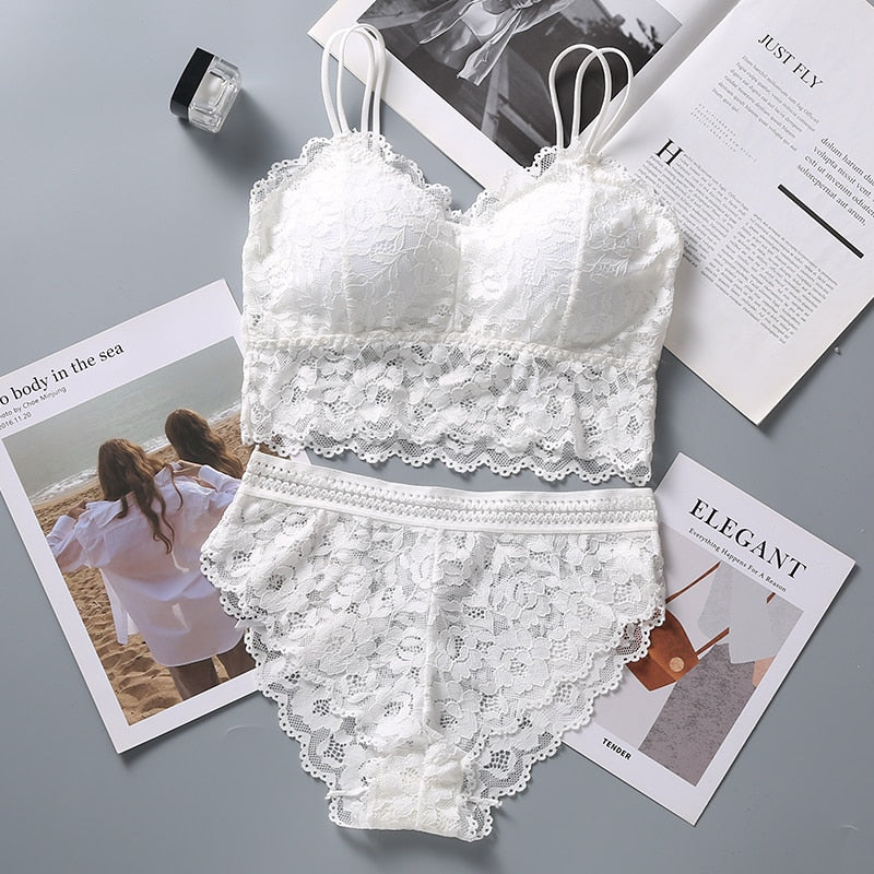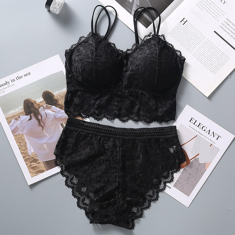 Women Lace Bra Set Sexy Lingerie French Bralette Lace Panties Cropped Bra Panty Set Female Intimates Seamless Underwear Set