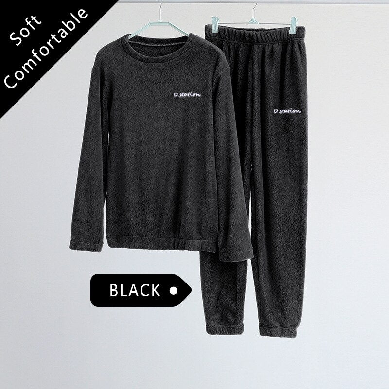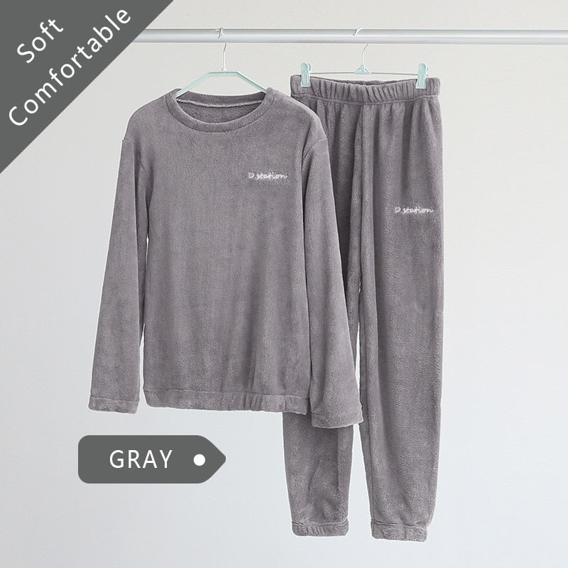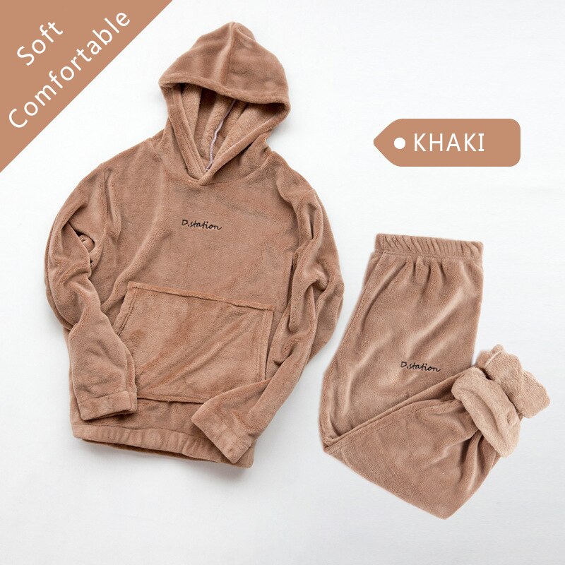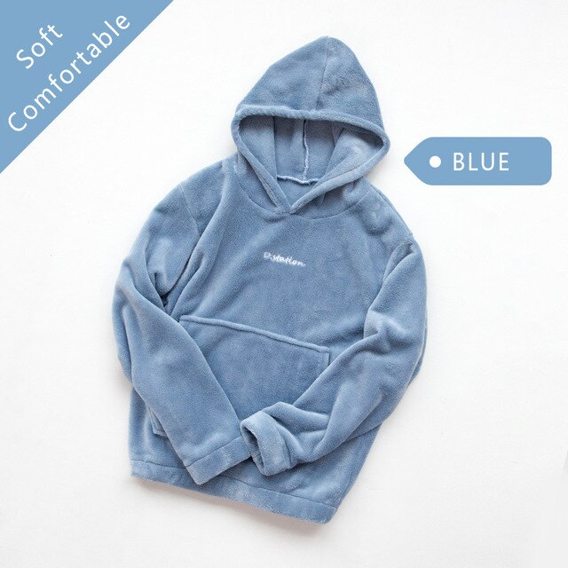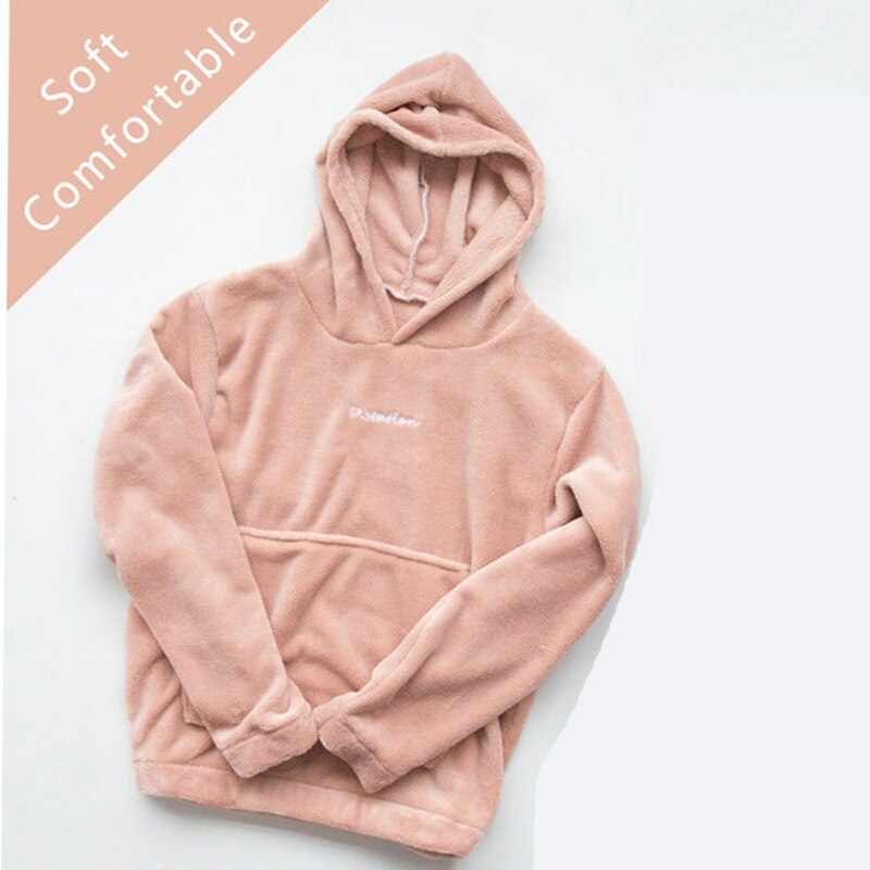 Women Pajamas Set Winter Warm Flannel Pajamas Homewear Thick  Female Sleepwear Plush Pyjamas Suit Sweatshirt Hoodies Solid Color