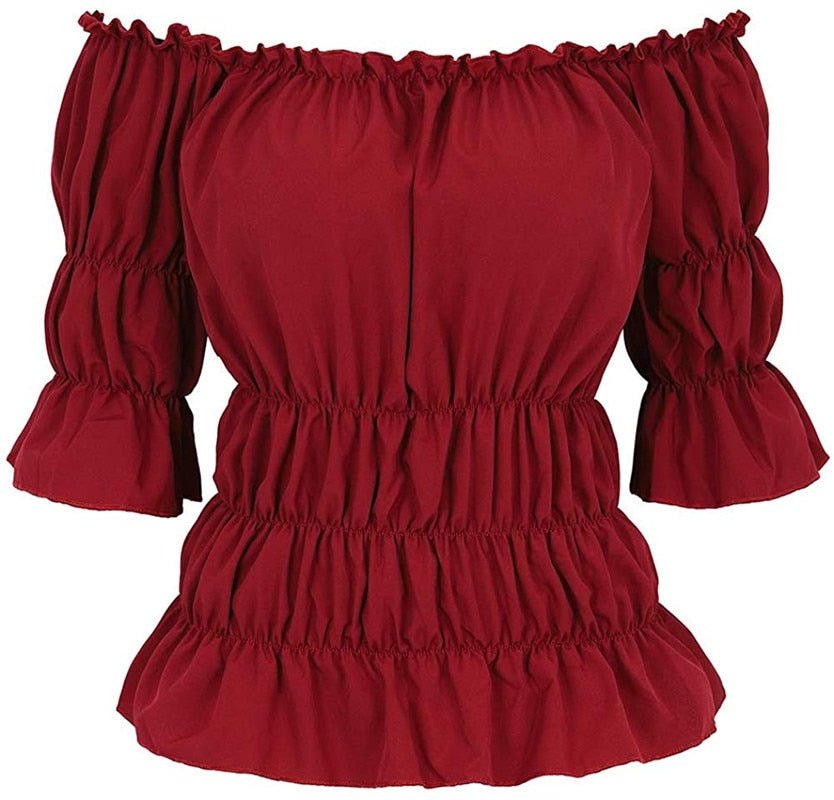 Women Renaissance Medieval Chemise Shirt Victorian Girls Gothic Retro Peasant Wench off shoulder Blouse Resist top Costume